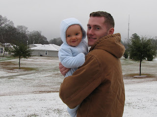 We had ourselves a little snow day today... Not that anything was closed. This is the first time that Josh and I have seen snow in two and a half years and this is the very first time that Luke has seen snow at all! I don't think he noticed much of a difference.